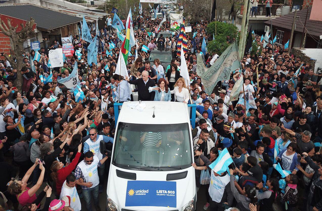 La expresidenta encabezó una caravana por la localidad de González Catán, a lo largo de 20 cuadras que recorrió subida a un camión, en el que también se encontraban su compañero de binomio, Jorge Taiana; el candidato a diputado nacional Fernado Espinoza y la intendenta del distrito, Verónica Magario. "Creemos en la democracia y apostamos a la unidad, no como el Gobierno que pretende dividir a la oposición, a los gremios y a los movimientos sociales para poder reinar. Ahora quieren fragmentar La Matanza. Eso no lo vamos a permitir", apuntó Cristina en un pasaje de su discurso que despertó la ovación de sus adherentes. La candidata dijo que desde Unidad Ciudadana se pretende "fortalecer la democracia con la unidad". Télam