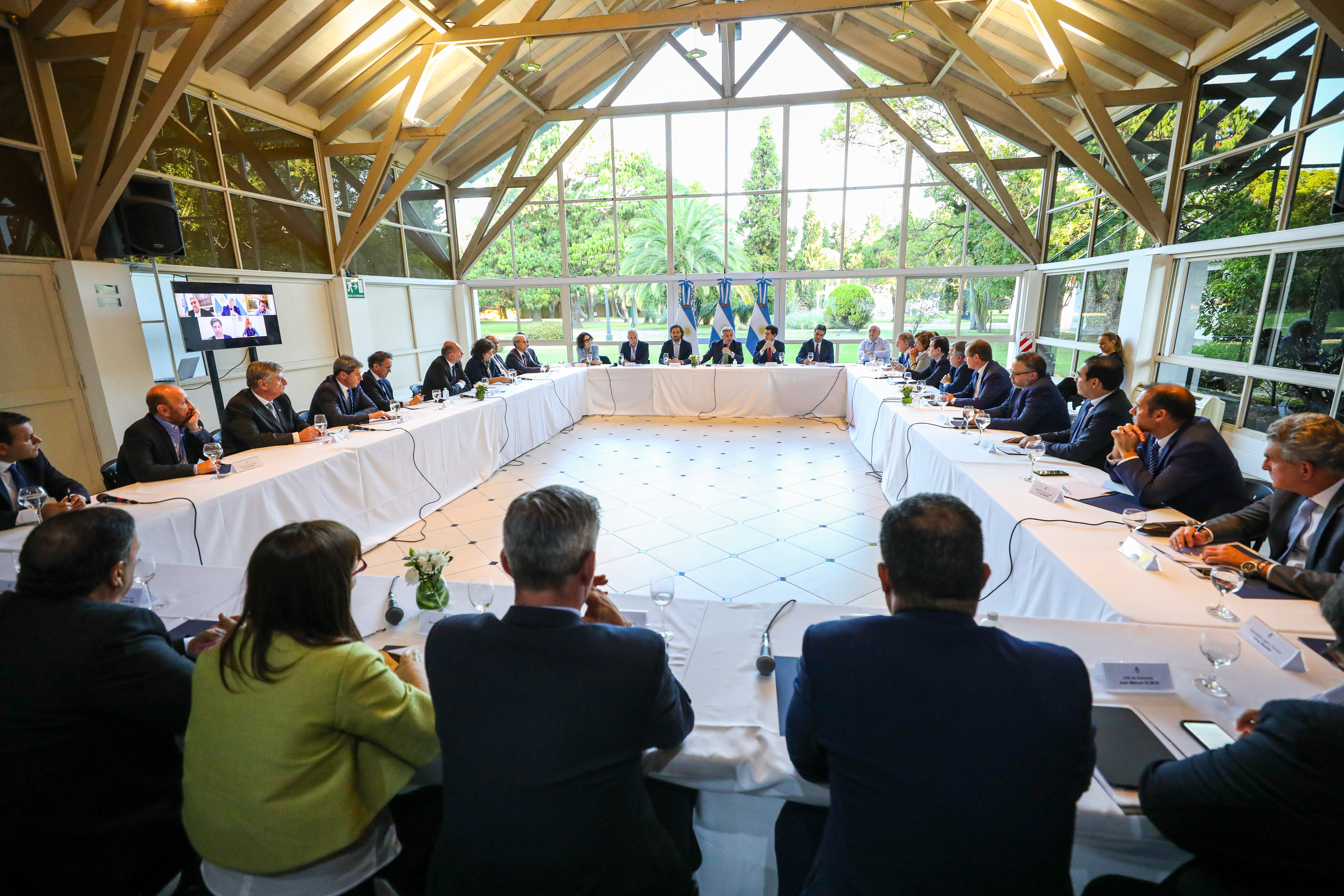 Hasta Olivos llegaron el jefe de Gobierno porteño, Horacio Rodríguez Larreta y los gobernadores Jorge Capitanich (Chaco), Gildo Insfrán (Formosa), Sergio Ziliotto (La Pampa), Gustavo Bordet (Entre Ríos), Sergio Uñac (San Juan), Gustavo Valdés (Corrientes), Juan Schiaretti (Córdoba), Mariano Arcioni (Chubut), Oscar Herrera Ahuad (Misiones), Omar Perotti (Santa Fe), Alberto Rodríguez Saá (San Luis), Arabela Carreras (Río Negro) y Omar Gutiérrez (Neuquén).
