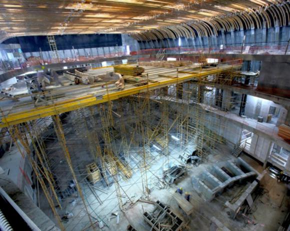 En total, este espacio dispondrá de 51 Salas de exposición (el Chandelier de 220 metros cuadrados son dos salas) o 15.000 metros cuadrados para exhibiciones; una cúpula que da la vuelta por todo el diámetro del edificio con terrazas abiertas; tres restaurantes; 16 salas de ensayo y 20 camarines.