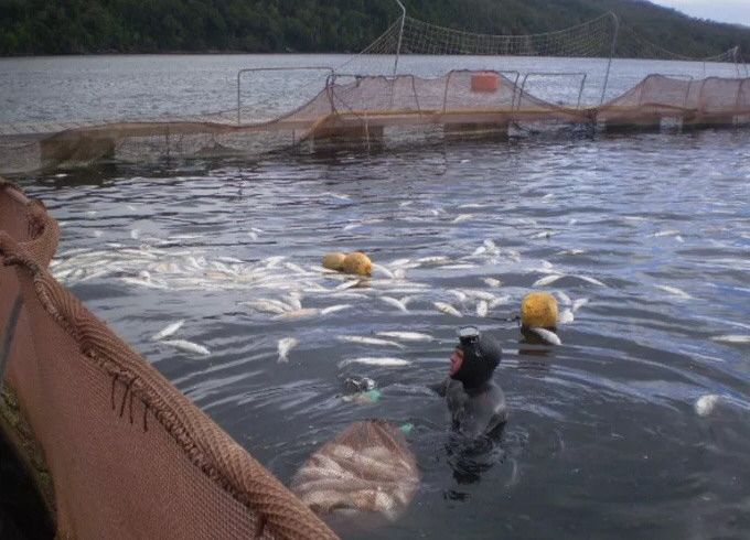 Uno de los desencadenantes de las críticas es el incidente ocurrido en julio en la isla Huar (Chile) donde unos 900 mil salmones se escaparon de un criadero de la empresa noruega Marine Harvest, y amenazan con provocar un desastre ambiental.