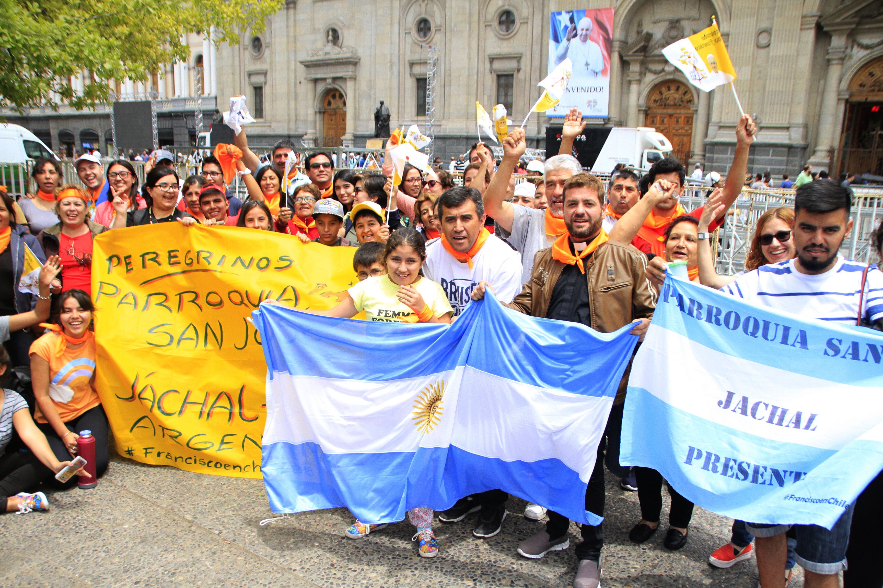 Mientras aguardan su llegada, miles de fieles de todo el mundo comenzaron a llegar al lugar y con mucho color se preparan para recibirlo. Y, como no podía ser de otra manera, los argentinos son los que más hacen “lío”: cantan, despliegan banderas y resaltan entre todos.