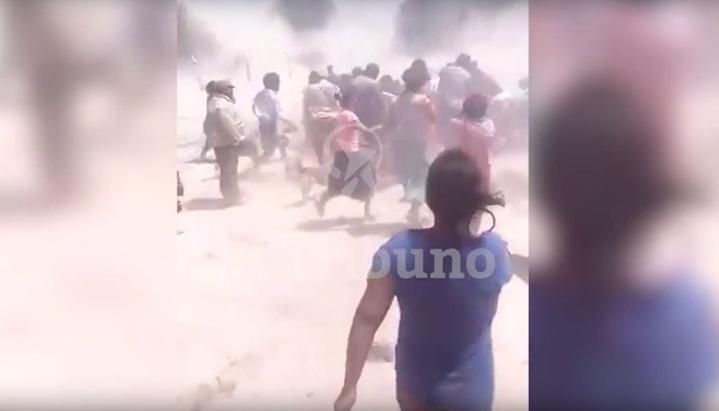 En el video se puede ver cómo la aeronave deja las donaciones en una especie de punto establecido y rápidamente levanta vuelo, segundos antes de que una decena de pobladores se abalance sobre los productos para poder recoger alguno.