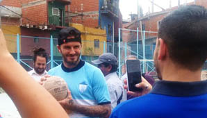 Este lunes, el ex jugador del Manchester United y el Real Madrid estuvo en la villa 1-11-14 del sur de la Ciudad de Buenos Aires. Allí jugó al fútbol con niños y jóvenes del asentamiento porteño, con los cuales luego se fotografió y a quienes les firmó autógrafos. Todo se realizó sin inconvenientes, bajo un estricto operativo de seguridad.