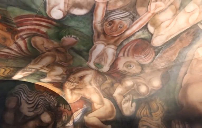 Siqueiros con su fascinante mural "Ejercicio plástico"