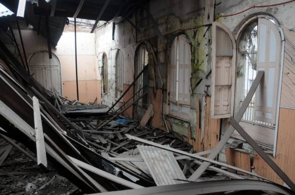 La parroquia San Francisco de Asís, de La Plata, donde en diciembre de 1945 se casaron Juan Domingo Perón y Eva Duarte, sufrió la caída de parte del techo de un salón, informó una fuente de esa casa parroquial.