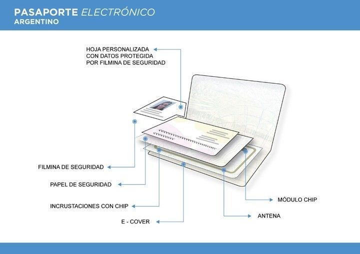 Se trata de una banda que bordea la contratapa del documento por dentro. “La antena junto al chip que llevan los pasaportes en su interior son los elementos que permiten que el documento internacional sea electrónico. Allí se almacenan los datos biométricos y biográficos de cada ciudadano”, explicaron a Clarín fuentes del Ministerio del Interior.