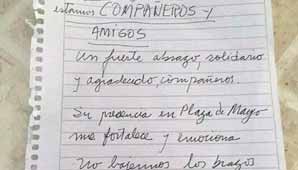 ‘No bajemos los brazos en esta lucha de todos’, los alentó Sala en la misiva, escrita en una hoja de cuaderno. Y concluyó: ‘Hasta la victoria siempre! Desde el campo nacional y popular’.