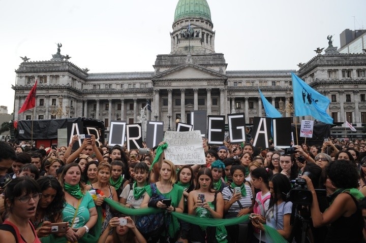 Con la insignia del pañuelo verde, las integrantes de la Campaña Nacional por el Aborto Legal, Seguro y Gratuito realizarán una vigilia en las inmediaciones del Congreso desde la medianoche del martes a la espera de la sesión que comenzará cerca del mediodía del miércoles y permanecerán allí hasta la votación.
