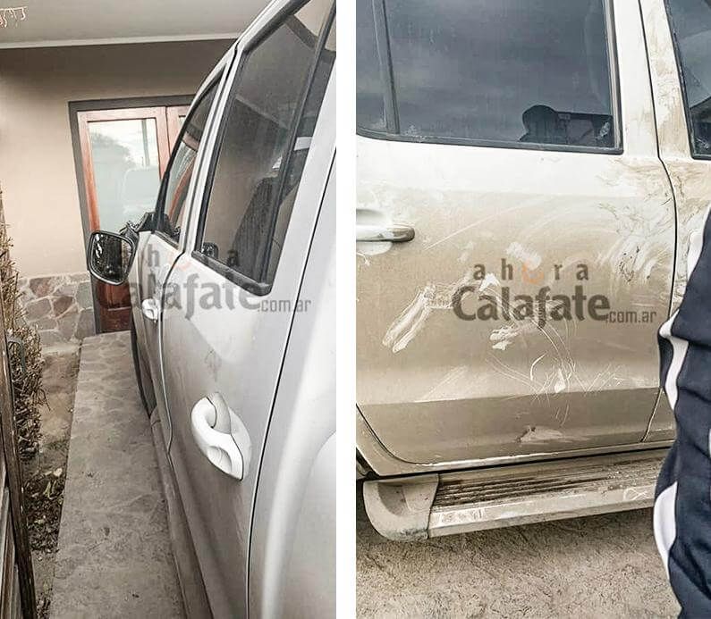 La camioneta de Gutiérrez, con el espejo roto. (Foto: gentileza Ahora Calafate)