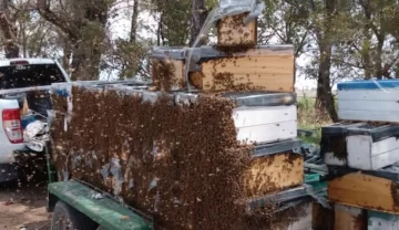 "Ahora estoy parado en un campo en Rio Cuarto, a la sombra, porque los núcleos se me están muriendo, miren esa pared de abejas. Les tuvimos que abrir porque están asfixiadas. La que no murió, sufrió un montón de calor", dijo a la par que mostraba cómo los insectos volaban, mientras otros permanecían sobre las cajas.