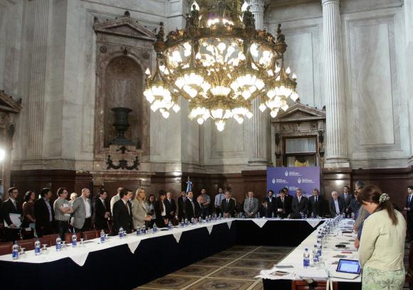 En tanto, la ultrakirchnerista santacruceña María Ester Labado presentó en soledad un dictamen de minoría en rechazo del acuerdo, mientras el presidente de la comisión de Presupuesto, el bonaerense Juan Manuel Abal Medina, sorprendió al anunciar que no iba a acompañar con su firma ninguno de los dos dictámenes.