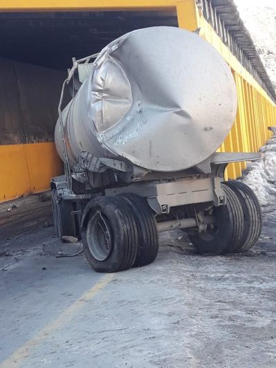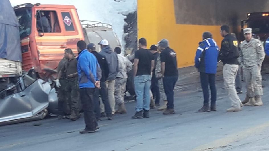 Según información oficial, el camión argentino fue colisionado por el vehículo liviano de nacionalidad argentina con dos ocupantes, el que a su vez fue colisionado y aplastado por otro camión cargado de 25.000 litros de grasa sólida. También intervino un 4º auto, el cual se deslizó hacia el interior del cobertizo con dos ocupantes lesionados, pero sin riesgo vital.