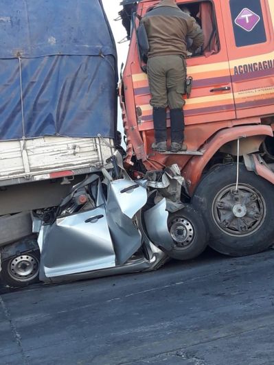 Las víctima fatales son dos hermanos de nacionalidad chilena: Amalia Andrea Valdivia Santis (30) y Luis Jesús Valdivia Santis (23), oriundos de Rancagua. Ambos viajaban en el auto que quedó aprisionado entre los dos camiones. En tanto que el conductor de uno de los camiones y los ocupantes de la camioneta resultaron con heridas múltiples. Ellos son: Claudio Romero, Luciana Pratellesi y Marcelo Conté, quienes fueron trasladados al Hospital San Juan de Dios de Los Andes para evaluación de lesiones, alcoholemia y procedimientos de rigor.