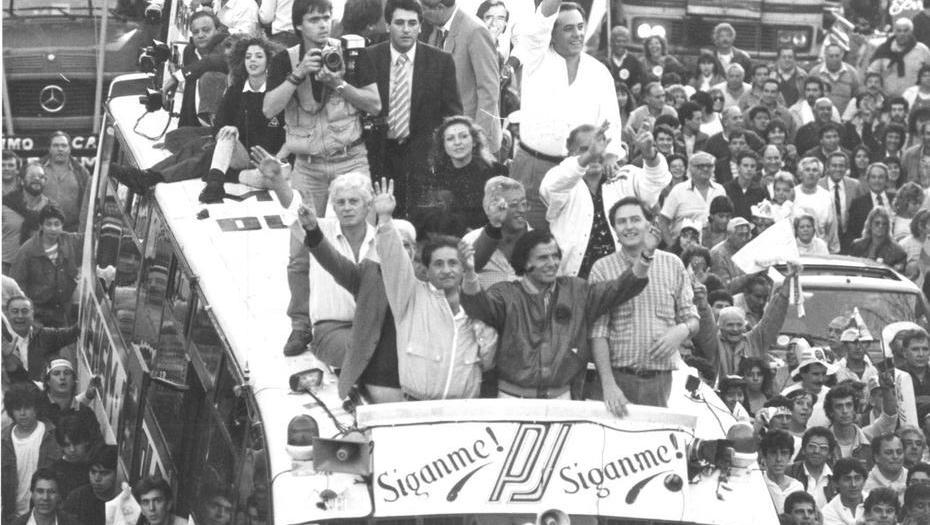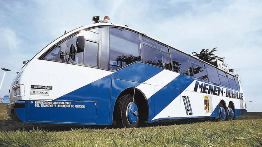 El colectivo del justicialismo está a nombre de Duhalde y fue patentada en mayo de 1988. No es un vehículo convencional: fue diseñado específicamente para acciones de campañas proselitistas. Tiene un lugar para custodia e invitados: baño, cocina, el acceso a una suerte de balcón encima de la cabina del conductor con capacidad para albergar a diez personas y una tarima especial para la personalidad destacada. Tiene una suite presidencial con todas las comodidades: sala de reuniones para seis personas, baño privado con ducha, un bar, una televisión. Para la campaña de 1995, se mejoró el sistema de sonido para que el presidente pudiera brindar discursos desde dentro del colectivo.