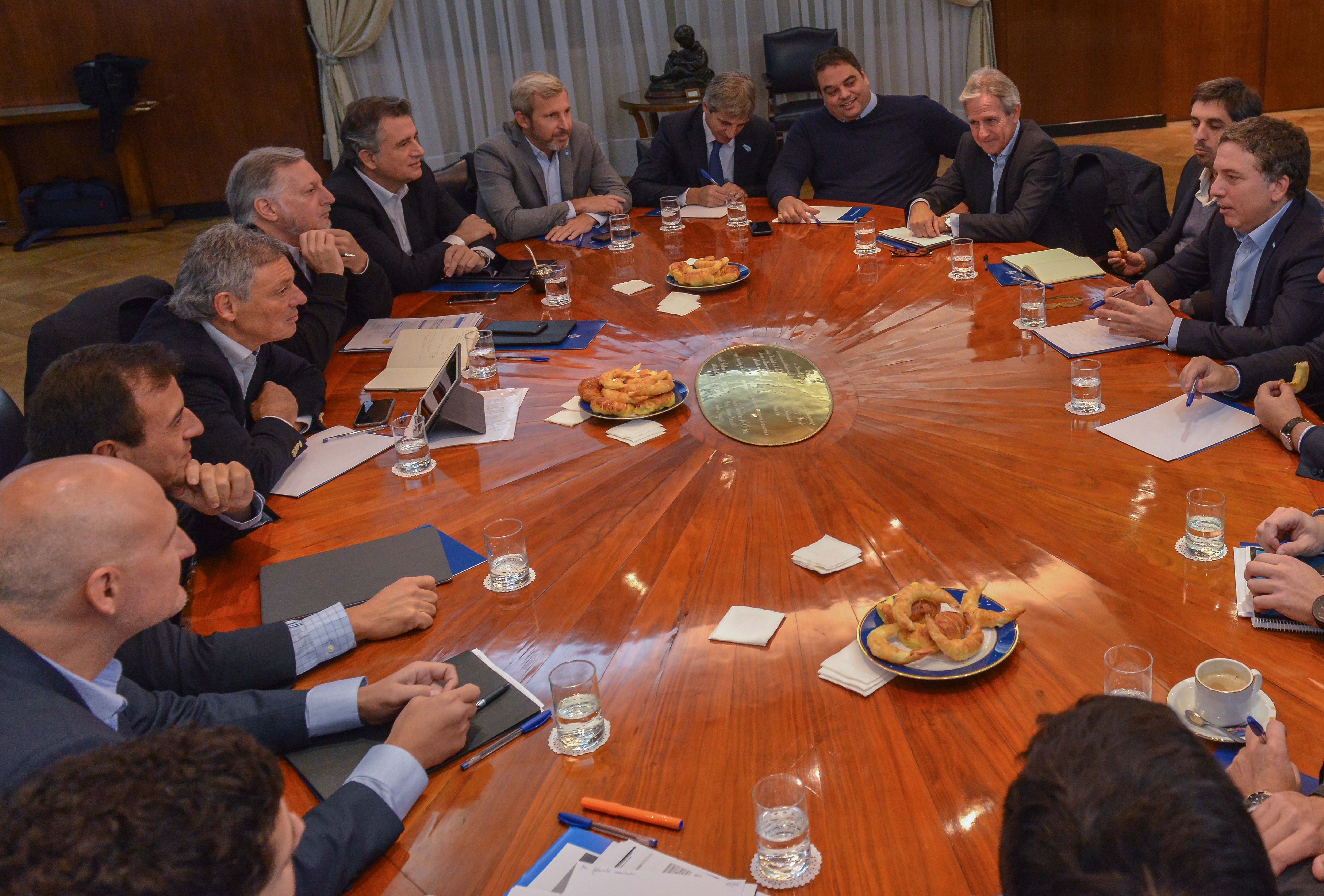 Junto a ellos estuvieron los ministros Luis Etchevehere (Agroindustria), Rogelio Frigerio (Interior), Luis Caputo (Finanzas), Juan José Aranguren (Energía), Jorge Triaca (Trabajo), Andrés Ibarra (Modernización) y Francisco Cabrera (Producción).