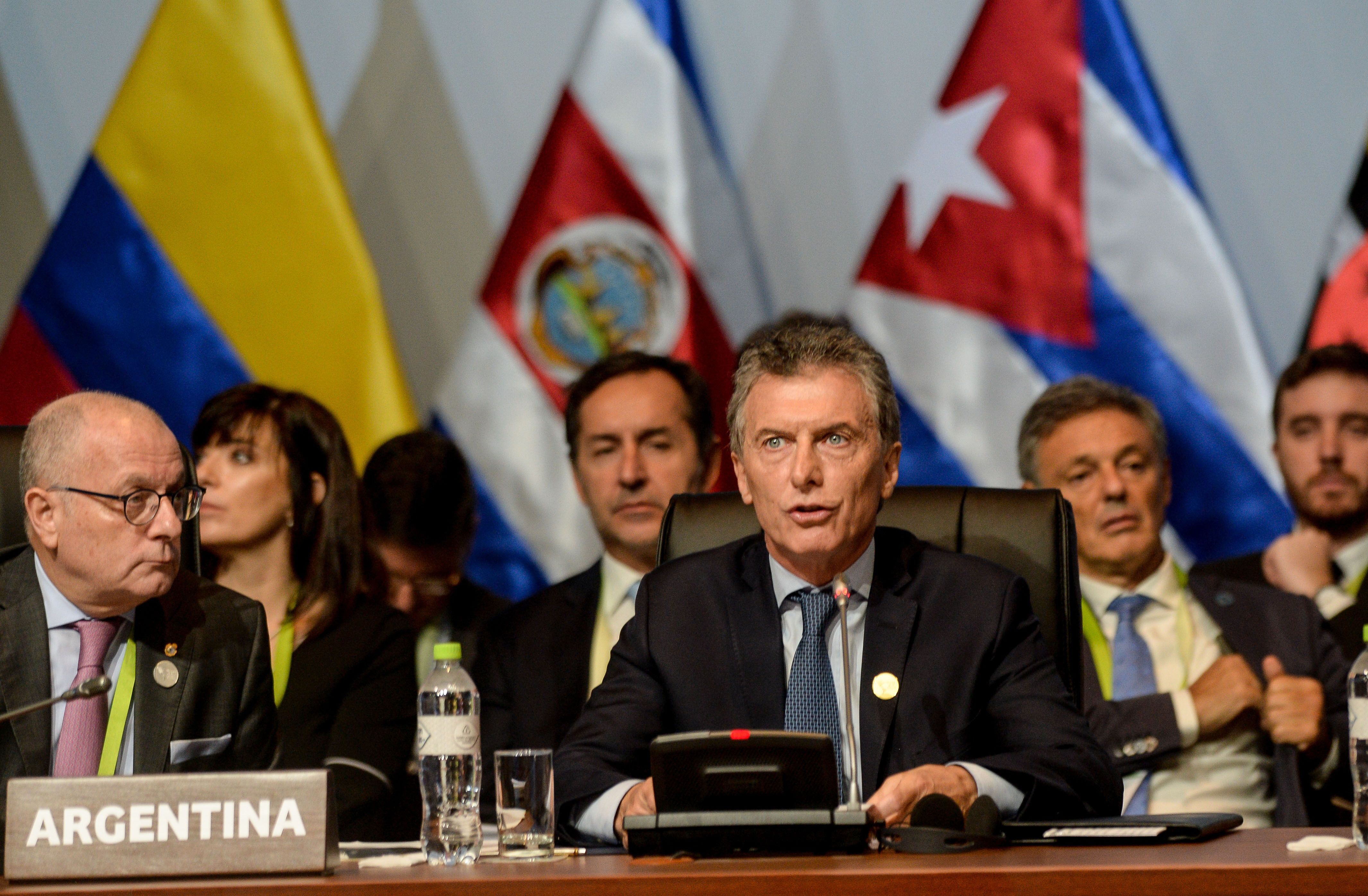 “No podemos mirar a otro lado, donde hay un proceso político sin garantías mínimas; vamos a desconocer cualquier elección que surja de un proceso de este tipo, porque no es elección democrática”, dijo el presidente argentino Mauricio Macri al tomar la palabra en la sesión de apertura de la cumbre, a la que asistieron 18 mandatarios y delegaciones de 34 países.