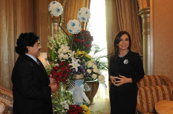La presidenta Cristina Fernández recibió ayer en los Emiratos Árabes a Diego Maradona, quien elogió la gestión del kirchnerismo al asegurar que ‘tenemos que estar orgullosos de nuestro país y de nuestro gobierno’. También criticó a la oposición y Francisco De Narváez salió a contestarle.