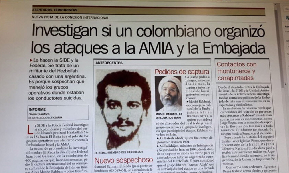 Hoja de ruta. Ya en 2003 diario Clarín publicaba una nota sobre los vínculos de El Reda con el tentado a la AMIA. El 18 de julio de 1994, menos de dos horas antes de que explotara la AMIA, El Reda escapó de la Argentina rumbo al Líbano.