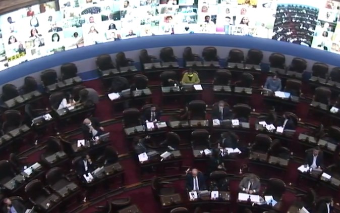 Ambos proyectos reúnen un buen nivel de consenso, por lo que se espera una aprobación unánime, en un recinto semipoblado y rodeado por una decena de enormes pantallas LED que transmiten la videoconferencia.