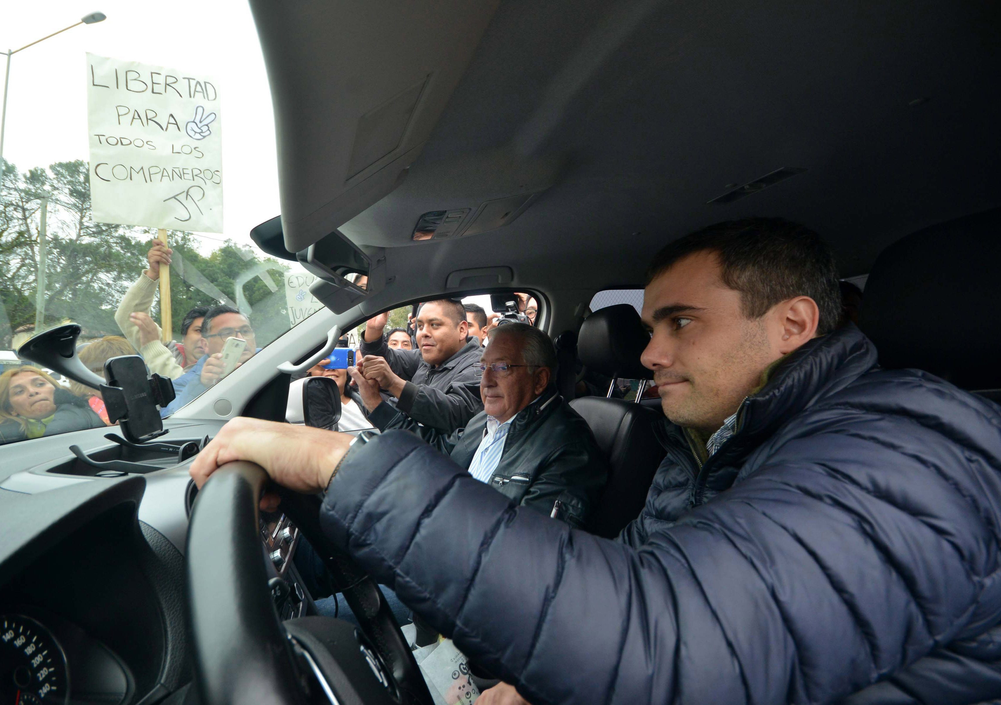 exmandatario fue liberado cerca de las 14.15 y fue esperado por militantes del PJ que se acercaron hasta el lugar con carteles que decían “Fuerza compañero” y “La juventud está con vos”.