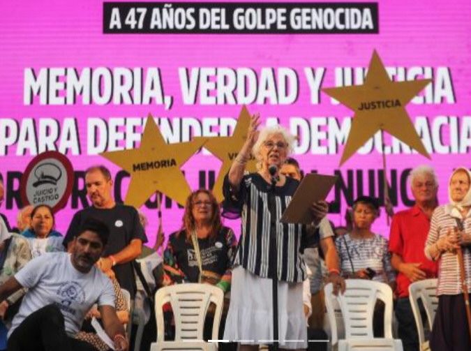 En las últimas semanas, la presidenta de Abuelas de Plaza de Mayo, Estela de Carlotto, habló de la persecución judicial contra CFK pero sugirió que la marcha del 24 de marzo debe estar centrada en las banderas históricas del movimiento de derechos humanos, Memoria, Verdad y Justicia.