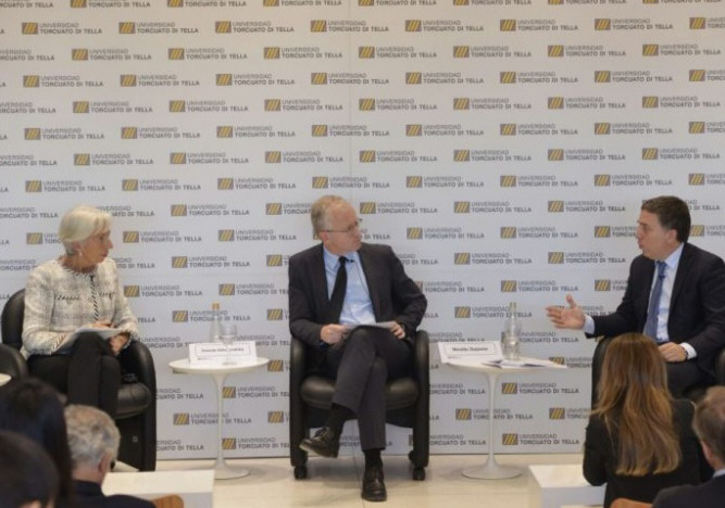 Además de la conferencia en la Universidad Torcuato Di Tella, la directora Lagarde se reunirá hoy con el presidente Mauricio Macri en la quinta presidencial de Olivos, en la provincia de Buenos Aires.