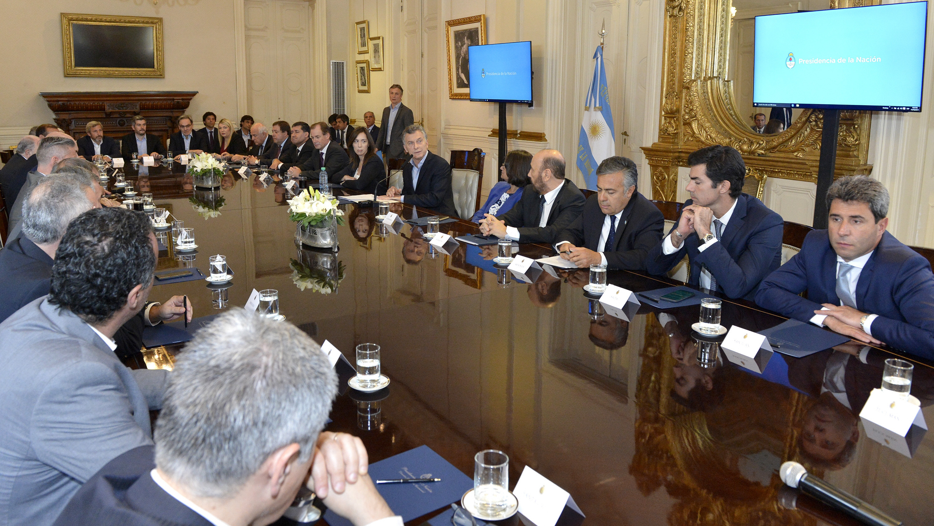 “Todos hemos aceptado que los impuestos, que se habían creado en muchos casos en forma defensiva por mal funcionamiento de la política, han distorsionado la capacidad de recibir inversiones, de desarrollar el sector privado y de crecer”, dijo el presidente Mauricio Macri al anunciar el acuerdo.