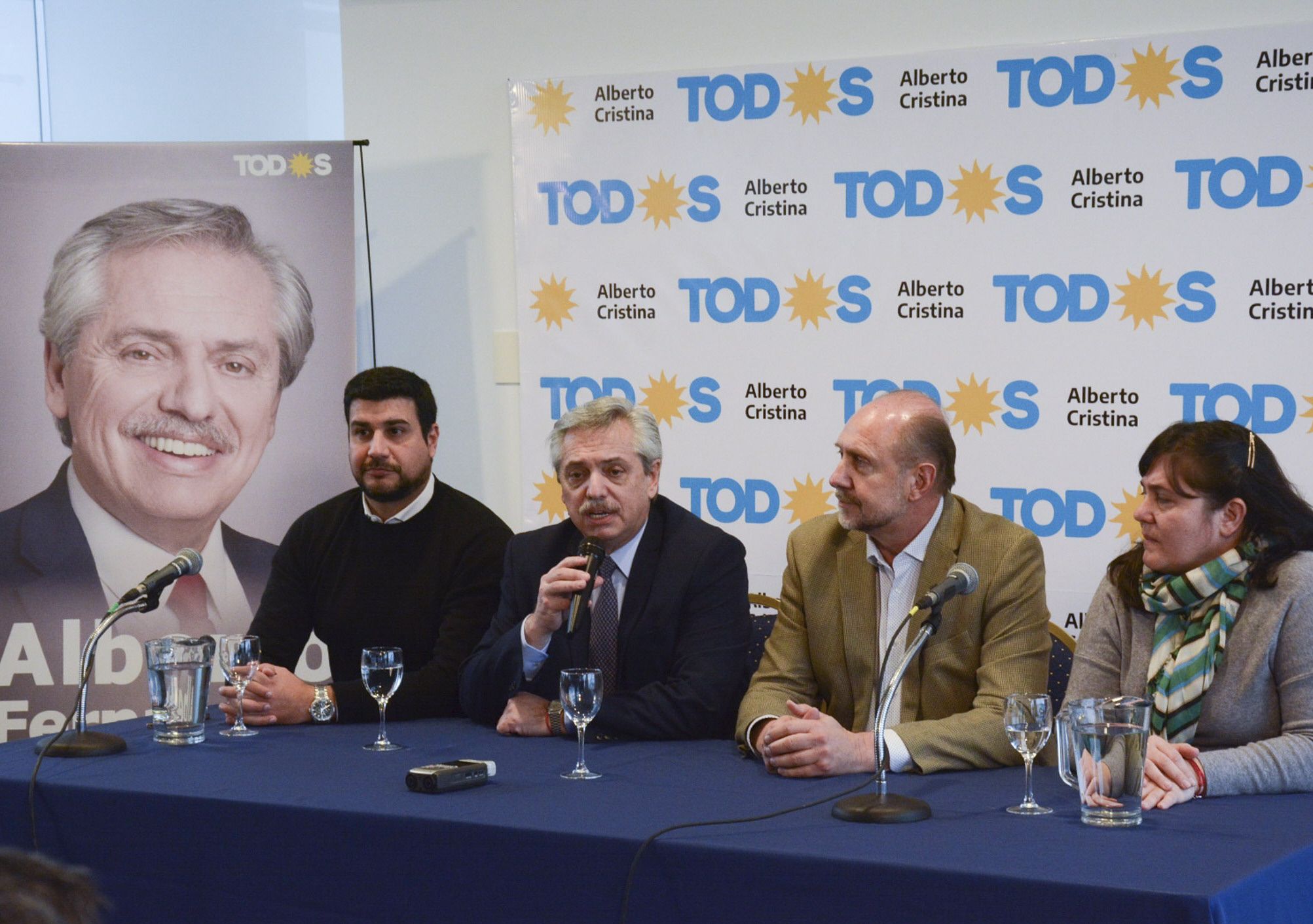 En Santa Fe. Alberto Fernández (centro) visitó Santa Fe, en donde se refirió al esperado debate presidencial con Macri.