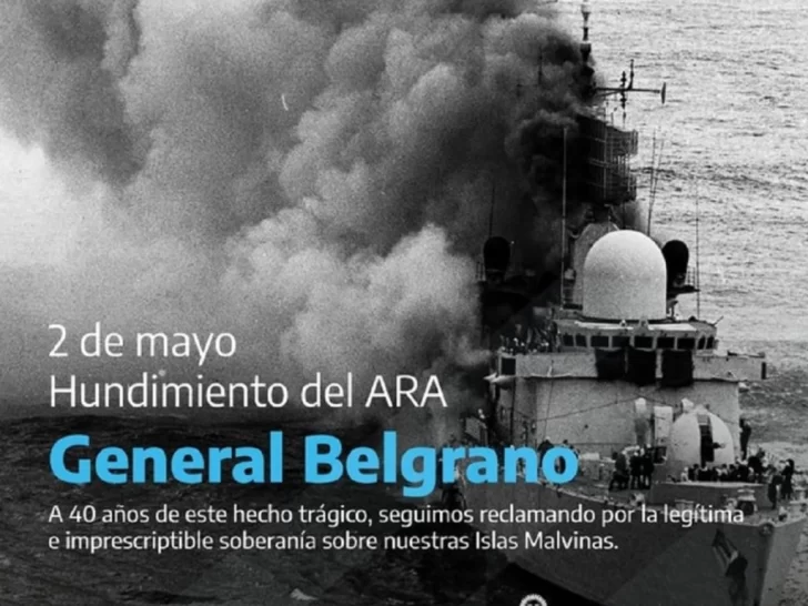 "Cada 2 de mayo recordamos a la tripulación del Crucero General Belgrano, que en el contexto de la guerra de Malvinas fue atacado por el submarino nuclear inglés mientras navegaba en dirección opuesta a las Islas, fuera del área de exclusión total", reseñaron desde el ministerio.