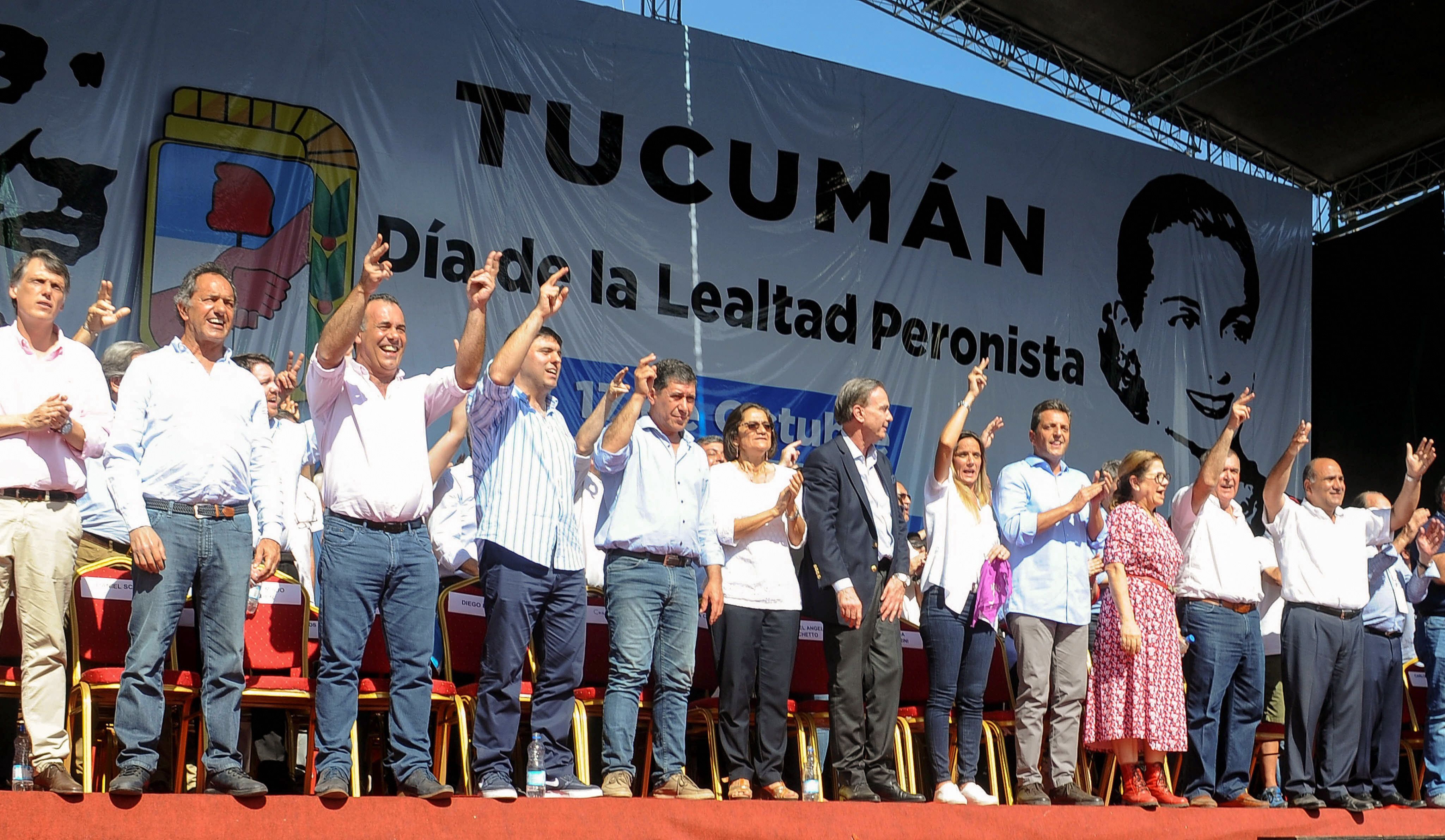 Allí coincidieron, entre otros, el gobernador tucumano, Juan Manzur, el exvicepresidente Daniel Scioli, el senador Miguel Ángel Pichetto y el líder del Frente Renovador, Sergio Massa. "Les pido a todos los compañeros a nivel nacional, sin excepción: el peronismo en el 2019 tiene y debe ir unido", expresó Manzur en el acto, haciendo alusión al año en que los argentinos deben elegir presidente. Tras criticar las políticas del Gobierno de Mauricio Macri, el mandatario provincial pidió "grandeza" a los peronistas y los convocó a la "unidad" para presentar sus mejores candidatos para obtener el triunfo electoral el próximo año.