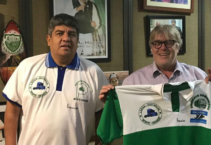 Vera le entregó las camisetas a Moyano durante un encuentro que mantuvieron en la oficina de la secretaria adjunta del Sindicato de Chóferes de Camiones, informó La Alameda en un comunicado.