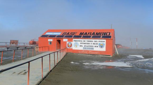 La base lleva el nombre de uno de los pioneros de la Fuerza Aérea en las operaciones antárticas, el vicecomodoro Gustavo Marambio.