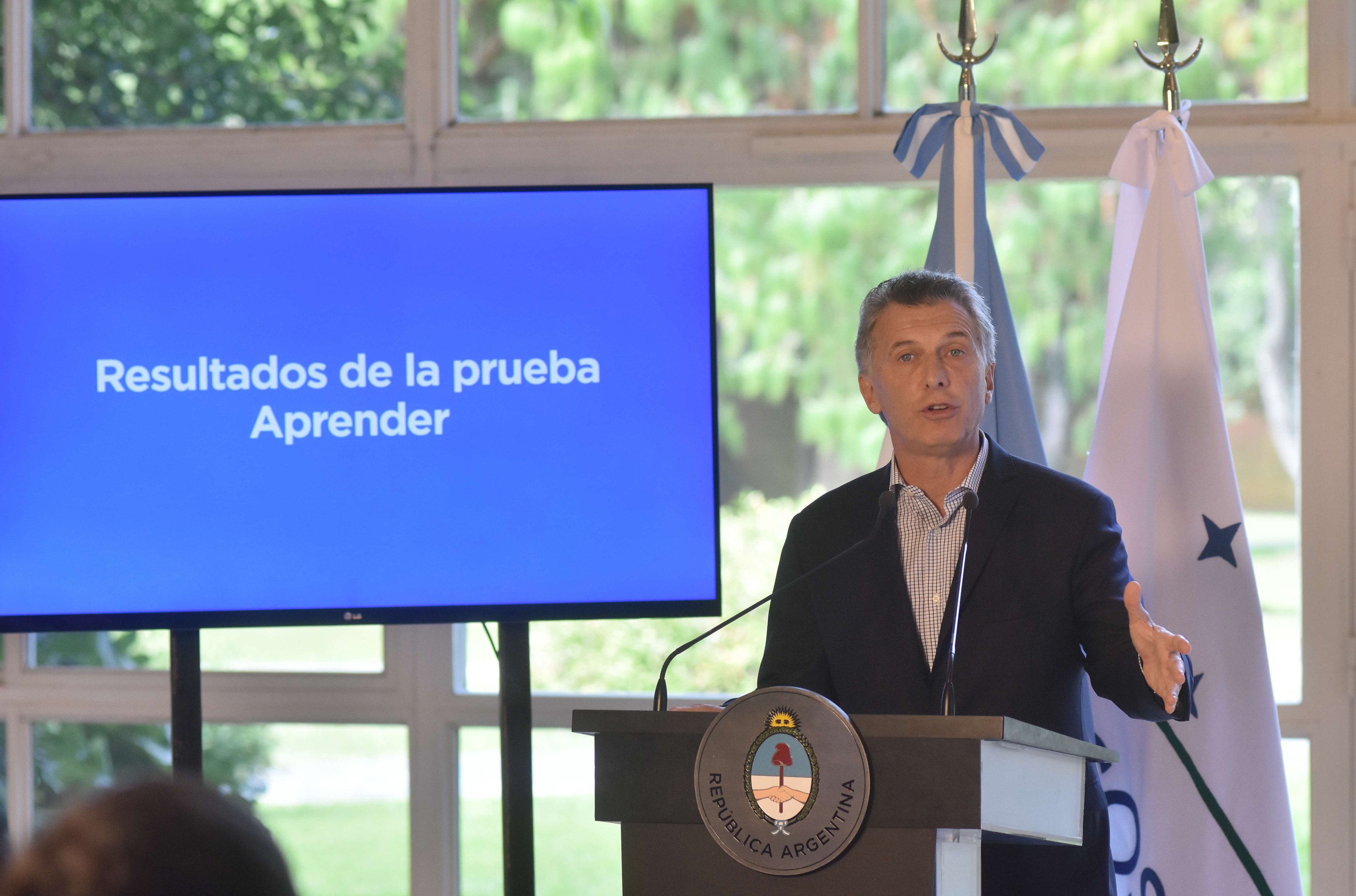 Respecto al Operativo Aprender aseguró que si bien los resultados son malos ‘la política focalizada tiene impacto, los problemas tienen solución, por eso estamos lanzando un sitio del Instituto Nacional de Formación Docente para que todos los docentes se capaciten y mejoren la práctica de la enseñanza de la matemática‘, señaló Bullrich. Aseguró además que desde su cartera trabajará ‘en forma individual con cada una de las tres mil escuelas que sacaron los resultados más bajos‘ en la evaluación a las cuales ‘no vamos a identificar‘.