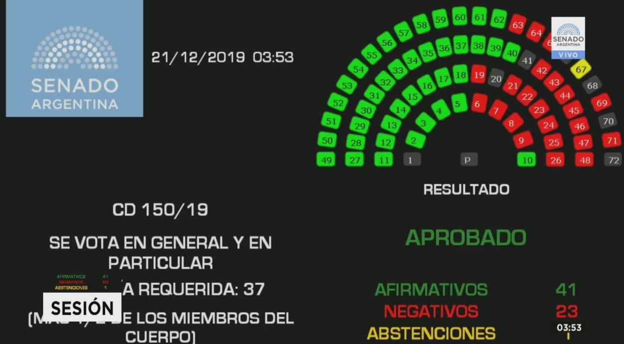 La Cámara de Senadores de la Nación aprobó durante la madrugada de este sábado, el proyecto de Ley de Solidaridad Social y Reactivación Productiva en el Marco de la Emergencia Pública, tras 12 horas de debate. Fue el debut de Cristina Kirchner como presidenta en el recinto.