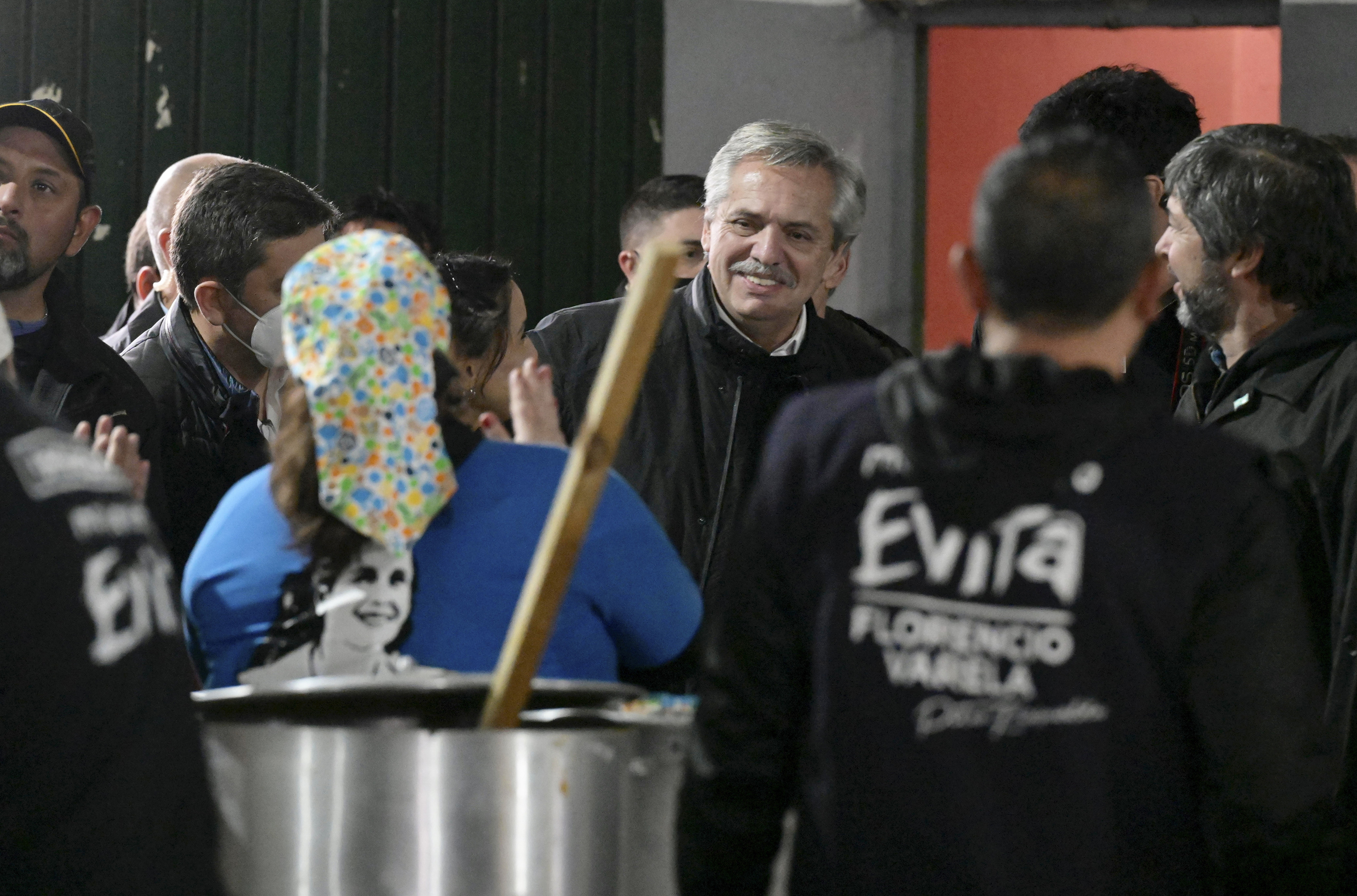 El presidente Alberto Fernández compartió al mediodía un locro con trabajadores de la economía popular en el partido bonaerense de Florencio Varela donde pidió que ‘estemos unidos para que esa derecha maldita nunca más vuelva a la Argentina’. ‘Tenemos un deber central como sociedad que somos, el deber de estar unidos, más unidos que nunca, hay que unirse aunque pensemos distinto, respetando que el otro piense distinto’, dijo el jefe de Estado en el Club Nahuel, ubicado en Avenida de Mayo 2544, donde llegó pasadas las 14 en helicóptero tras participar del tradicional Tedeum en la Catedral.