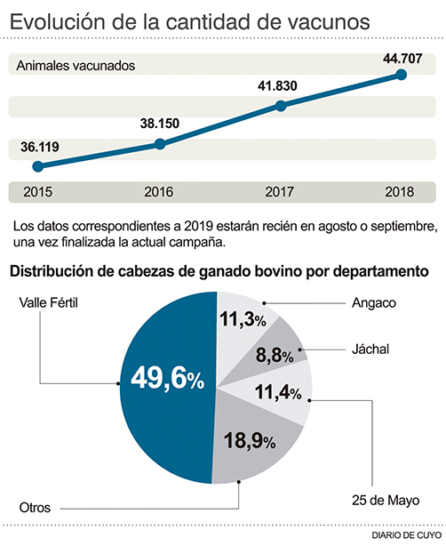 Alfredo Martín, director de Desarrollo Pecuario, dijo que el numero se viene incrementado año tras año desde el 2015. En el 2018 el aumento llegó al 7% y para el final del 2019 es seguro que también será mayor. Actualmente se está en plena campaña de vacunación y los resultados estarán recién en agosto o septiembre una vez finalizada la misma.