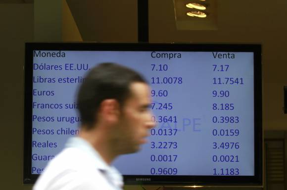 La moneda argentina cerró con una caída de un 3,3% para perforar la barrera psicológica de 7 unidades por dólar a 7,12 sin que el Banco Central hiciera nada por evitarlo. Este fue el peor retroceso del peso desde al menos el 2003, cuando el país comenzó a recuperarse de una devastadora crisis financiera. En el mercado negro el peso perforó el piso de 12 unidades por dólar para ceder un 2,47% a 12,15, según operadores.