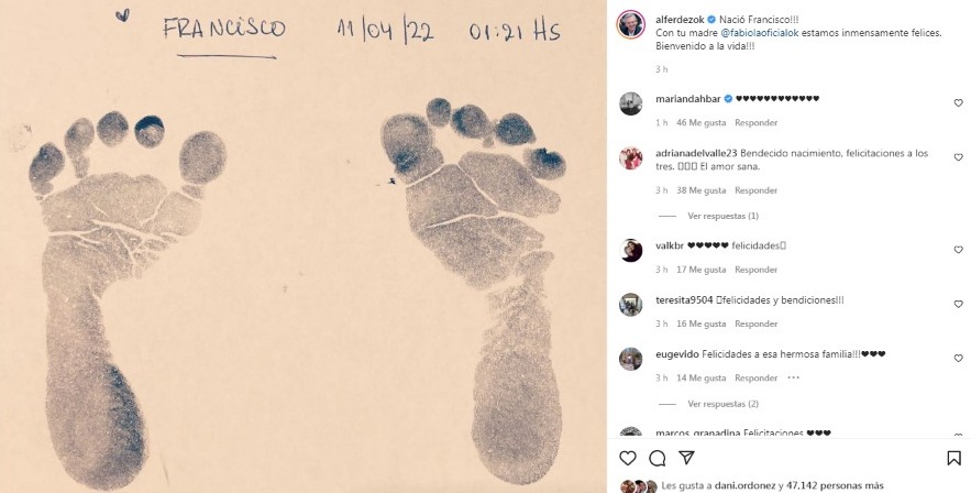 "Con tu madre @fabiolaoficialok estamos inmensamente felices. Bienvenido a la vida!!!", escribió el mandatario. A diferencia del resto de sus anuncios, esta vez el Presidente optó dar su buena nueva por Instagram, en lugar de Twitter, la red a la que le da más uso.