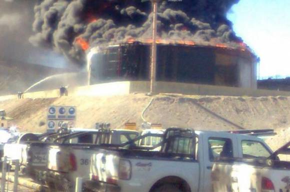 Se trata de un tanque con una capacidad de 10 mil metros cúbicos, ubicado cerca de Divisadero Largo, a 20 kilómetros de la localidad de Bardas Blancas que había comenzado a incendiarse el viernes al mediodía en la planta de Cerro Divisadero, a 20 km de la localidad mendocina de Bardas Blancas, en el sur de Mendoza.
