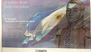 Chaco.- En lo que fue un grosero error que dio que hablar en las redes sociales, el gobierno de Chaco publicó en varios diarios una solicitada en la que recordó el nacimiento de José de San Martín en lugar de su muerte.