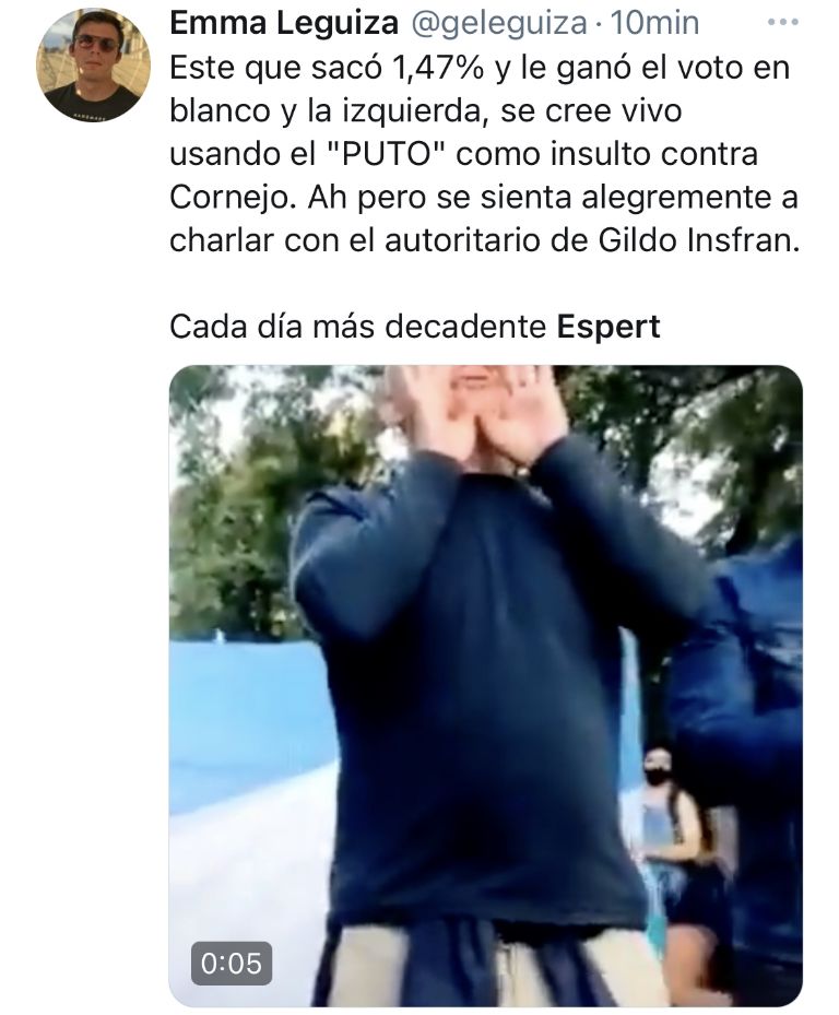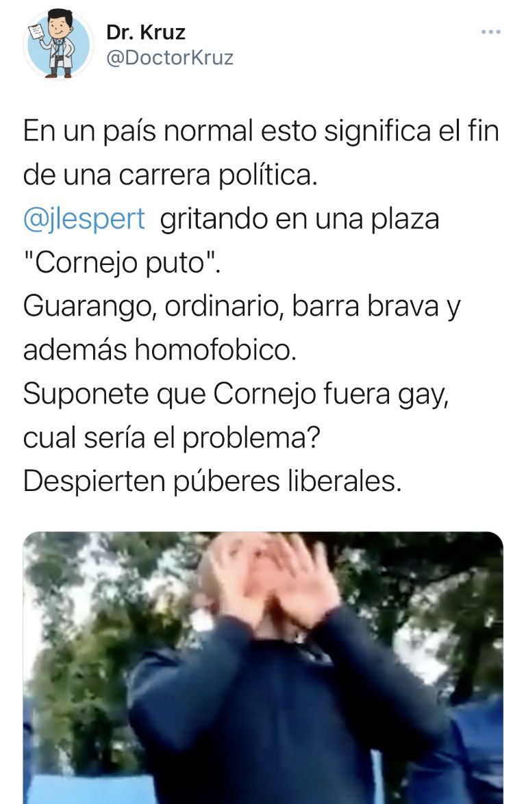 En Twitter, la reacción al video que circuló con el grosero improperio de Espert hacia Cornejo causó muchísima repercusión. A continuación te mostramos algunos de los tuits.