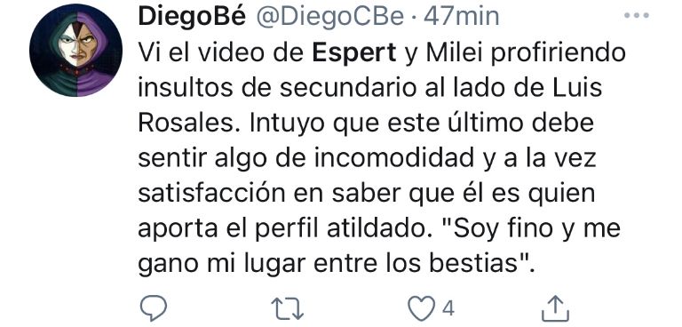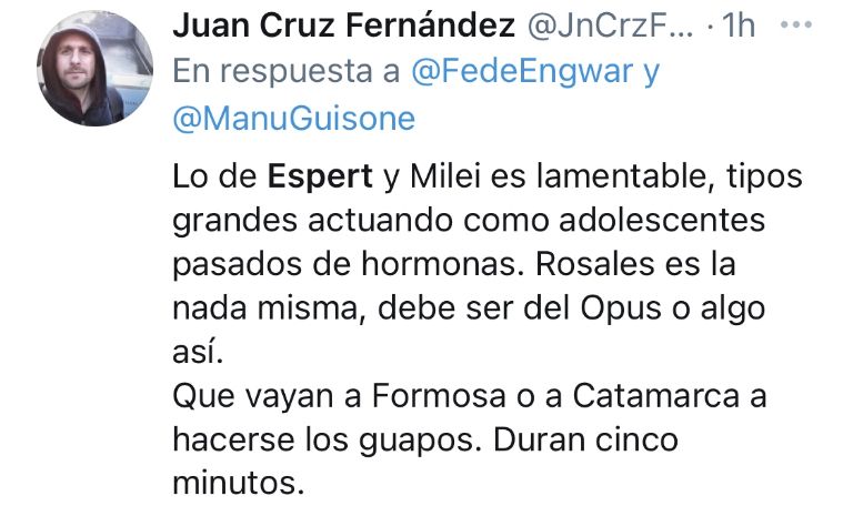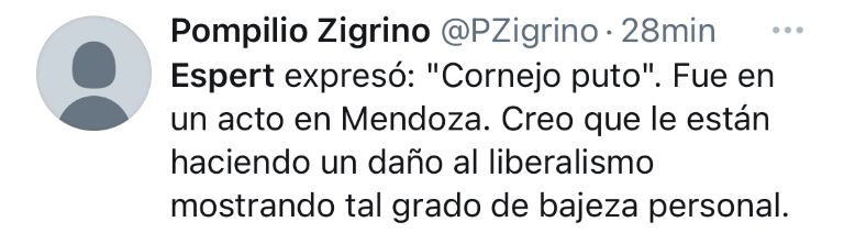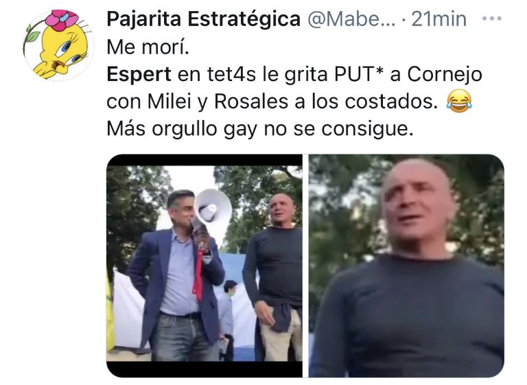 Sin embargo, lo que hizo estallar las redes fue un comportamiento de José Luis Espert en la plaza Independencia, en el corazón del centro mendocino. Allí, mientras Rosales hablaba con un megáfono, Espert profirió un fuerte insulto hacia el presidente de la Unión Cívica Radical a nivel nacional y ex gobernador mendocino, Alfredo Cornejo.
