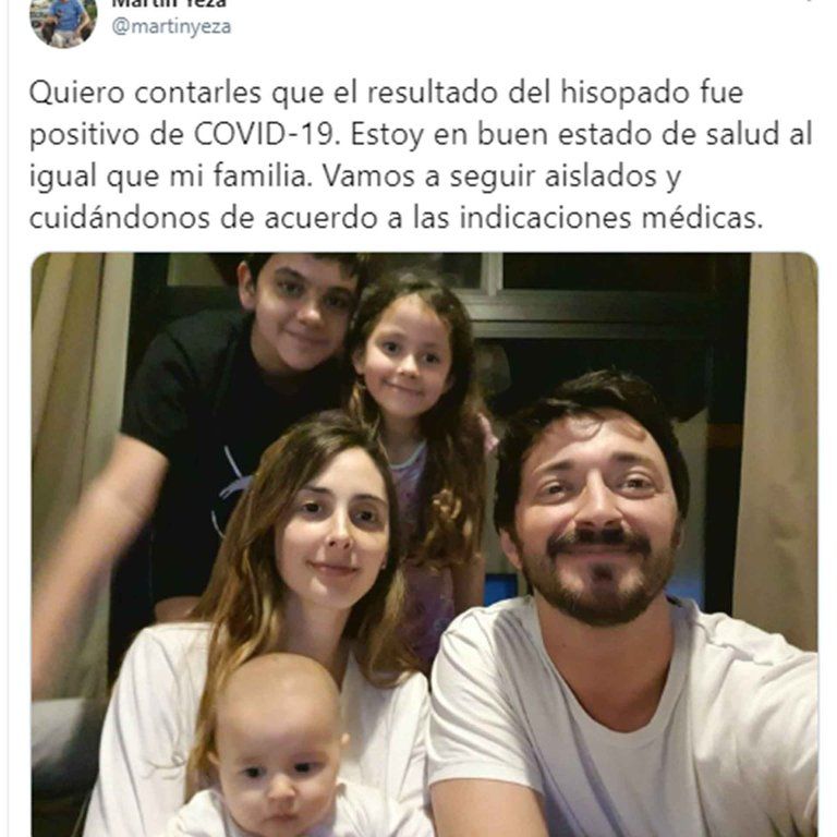 Yeza se había aislado ayer junto a su esposa, Carolina Schutz, en forma preventiva, luego de presentar síntomas compatibles con el coronavirus. Para hoy esperaba los resultados del hisopado y fue él mismo quien decidió darlos a conocer.