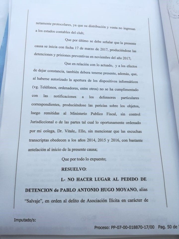 "Confirmo que no hice lugar a la orden de detención y hago responsable de la filtración de mi resolución al personal de la fiscalía general de Cámara que se llevó de acá el expediente", concluyó.