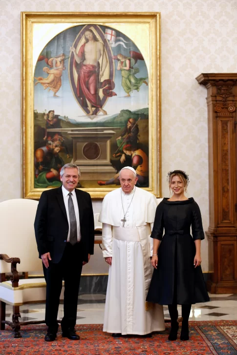La primera dama argentina Fabiola Yañez lució segura y elegantemente vestida, con un toque de sobriedad, en la audiencia con el Papa en la que acompañó al Presidente.