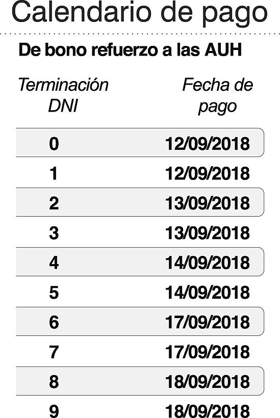 En el caso de la AUH pasa a ser de $ 1.684 por hijo. Así una familia de dos hijos va a cobrar $ 1.684 por dos, más los $ 1.200 por dos, lo que llega a aproximadamente $ 6.000 de ayuda durante septiembre.