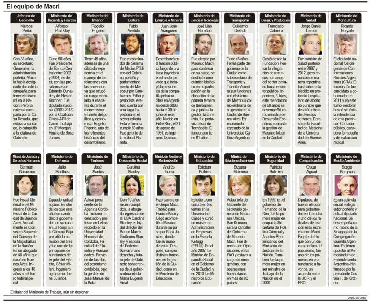 en Energía y Minería, a la diputada Patricia Bullrich en la cartera de Seguridad, entre otros -ver infografía-.