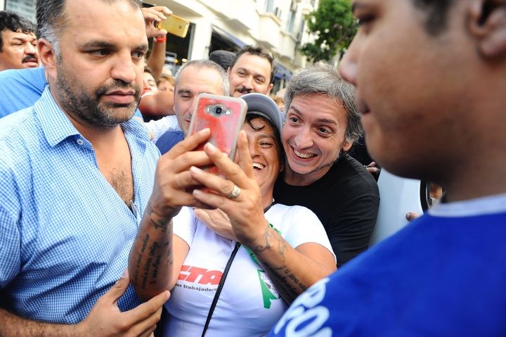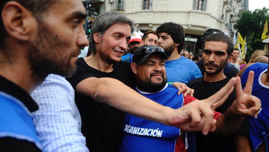 El diputado nacional Máximo Kirchner participó de la marcha de Hugo Moyano, en la avenida 9 de Julio de Buenos Aires, contra el gobierno de Mauricio Macri.