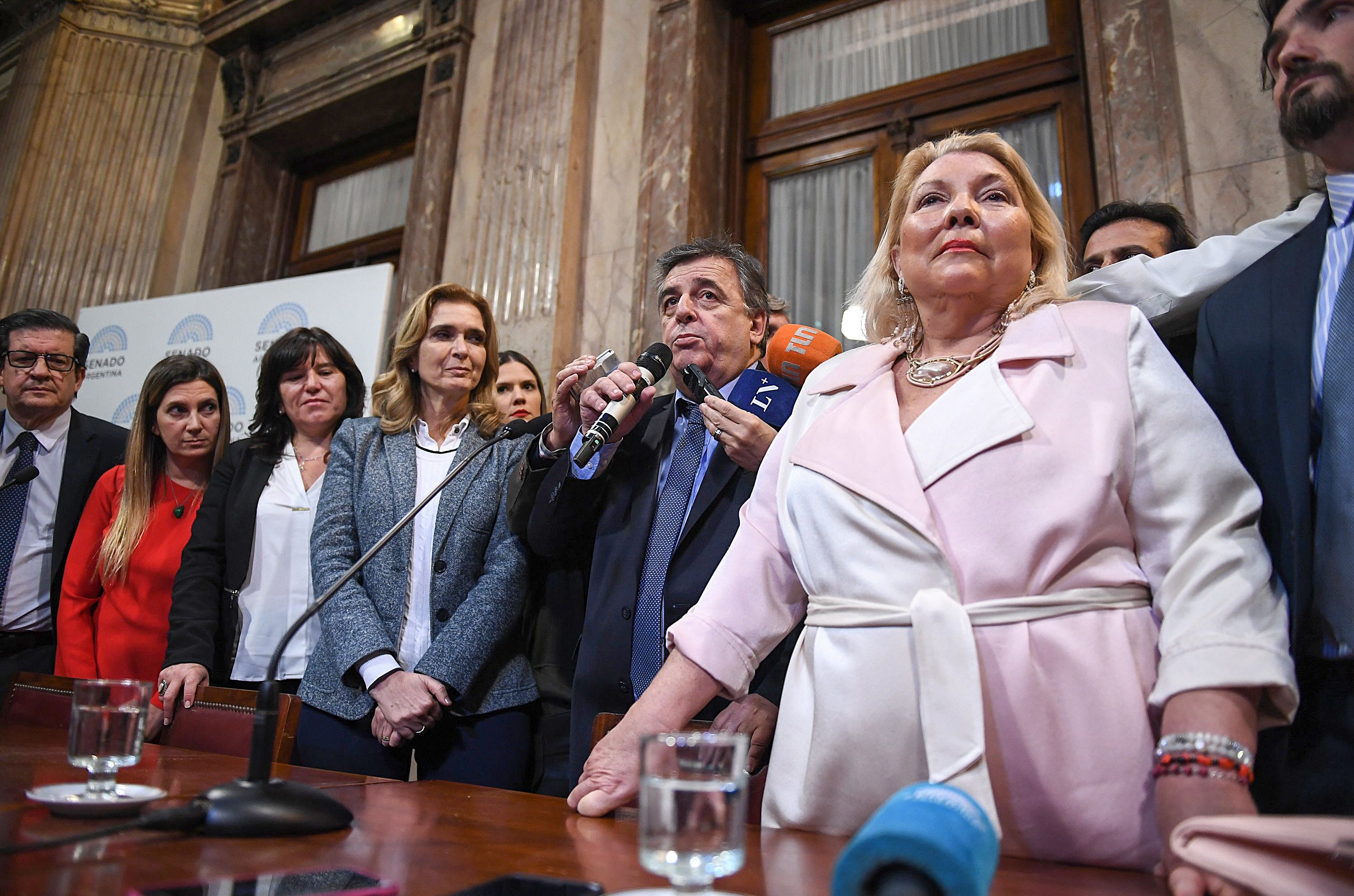 "Esto es una niñada, una cosa estudiantil. Tienen que reflexionar", dijo Carrió en la conferencia de prensa que brindó minutos después, en el mismo salón Provincias, rodeada por sus compañeros de Cambiemos.
