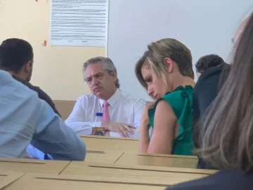 Así, junto a su ayudante de cátedra, Adrián Rois, el mandatario comenzó a tomar examen a los estudiantes en el aula 235, en el segundo piso de la Facultad. En tanto, afuera en los pasillos, se comenzaban a juntar decenas de alumnos que se enteraron de la presencia del Presidente.